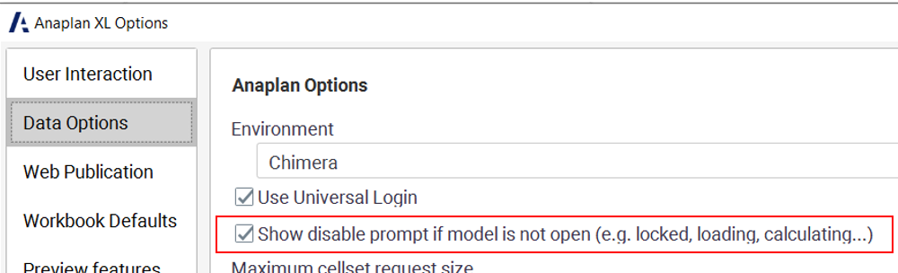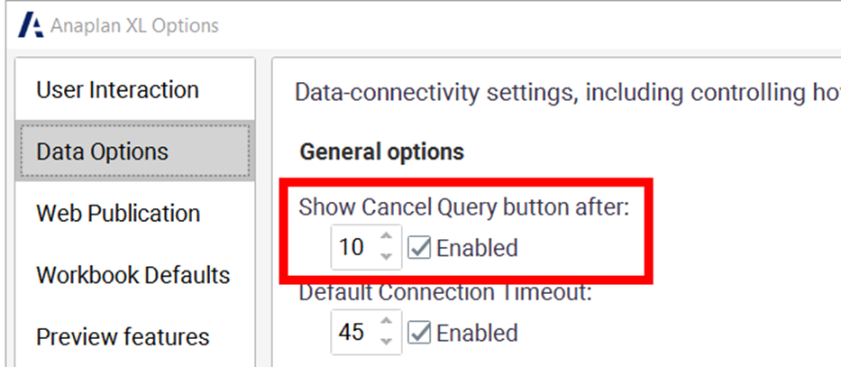 - Anaplan XL (version 2509) - Anaplan data source: Support has been added for drilling down in Anaplan models. Improvements have also been made to how unavailable models are handled. If an Anaplan model is unavailable when a workbook is opened, a user can turn off Anaplan XL to prevent further connection error messages from being displayed; Anaplan XL can be reactivated by the user. Users can now cancel queries and define how long to wait before the Cancel Query button appears.