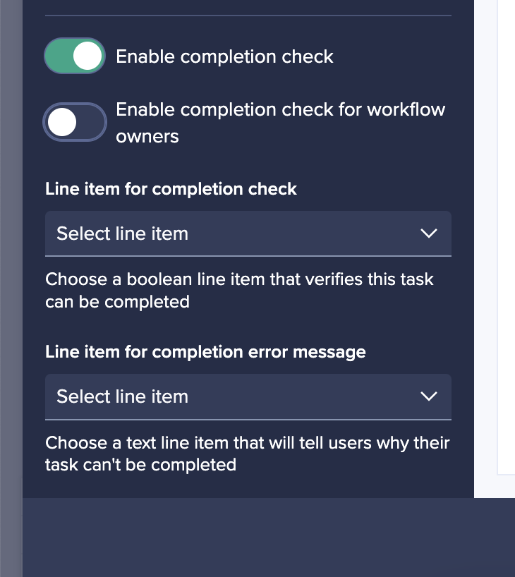 - Improved task completion checking: Workflow owners can now configure a completion rule to specify whether it should apply to Workflow owners as well as other users. Switching this setting on will mean everyone who completes the task will be forced to abide by the completion rule, reducing the risk of Workflow owners leaving tasks incomplete or inaccurately completed when part of someone else's workflow.