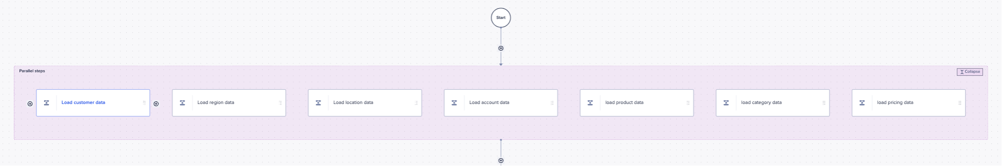 We can then use this to create parallel ADO extracts to improve the efficiency of loading data into ADO. ADO allows us to do five concurrent syncs (the parallel workflow step allows up to 20 actions).