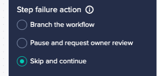 - Drag the next step in, you don’t need to change the ‘step failure action’:
