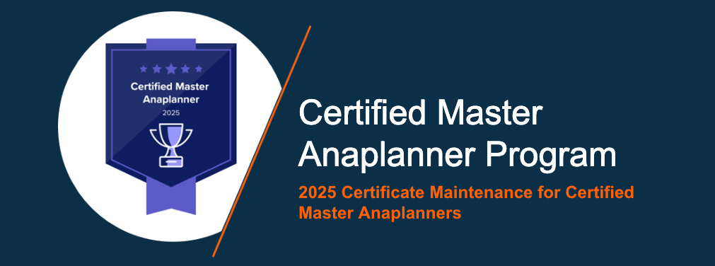 The 2025 Certified Master Anaplanner Program has begun and there's incredible opportunity for 2025 Certified Master Anaplanners (CMAs) to demonstrate their thought leadership, technical expertise, evangelism, and mentorship capabilities across the entire Anaplan Ecosystem!