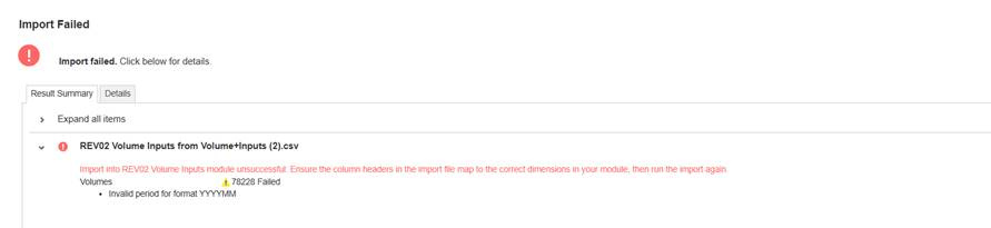 The following is because I have been having issues completing the Anaplan Training Level 1, considering that when I try importing into a module I am receiving errors when the dates are presented as YYYYMM. Even when I select the custom format for the dates in the column headers when mapping the data, I receive the same error message, find below screenshots of the error, we have tried troubleshooting or changing the format in the source file but still seems not to be working, find below screenshots: