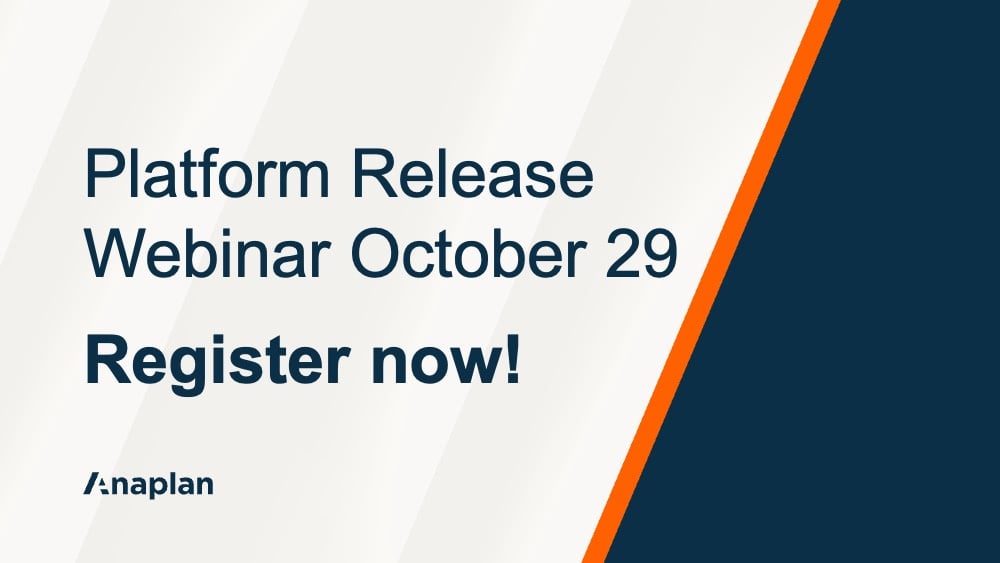 Anaplan's next quarterly platform release webinar will be held October 29, 2025 at 8 a.m. Pacific Time. During this session, we will explore the latest features so you can optimize your Anaplan experience.