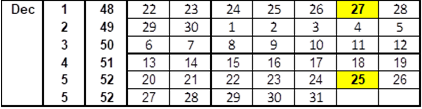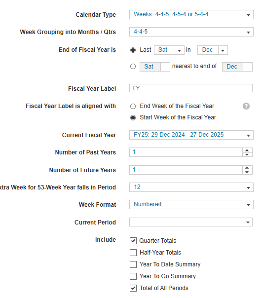 I am trying to configure Week 52 for the year 2025 to span from December 20th to December 31st and Week 01 for the year 2026 to cover January 1st to January 9th.