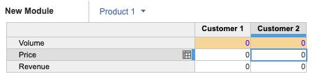 As a user, however, I want to be able to insert a price in the same module. The expected behavior when inserting a price e.g. for Customer 1 would be, that this price would be shown across all customers for this product.