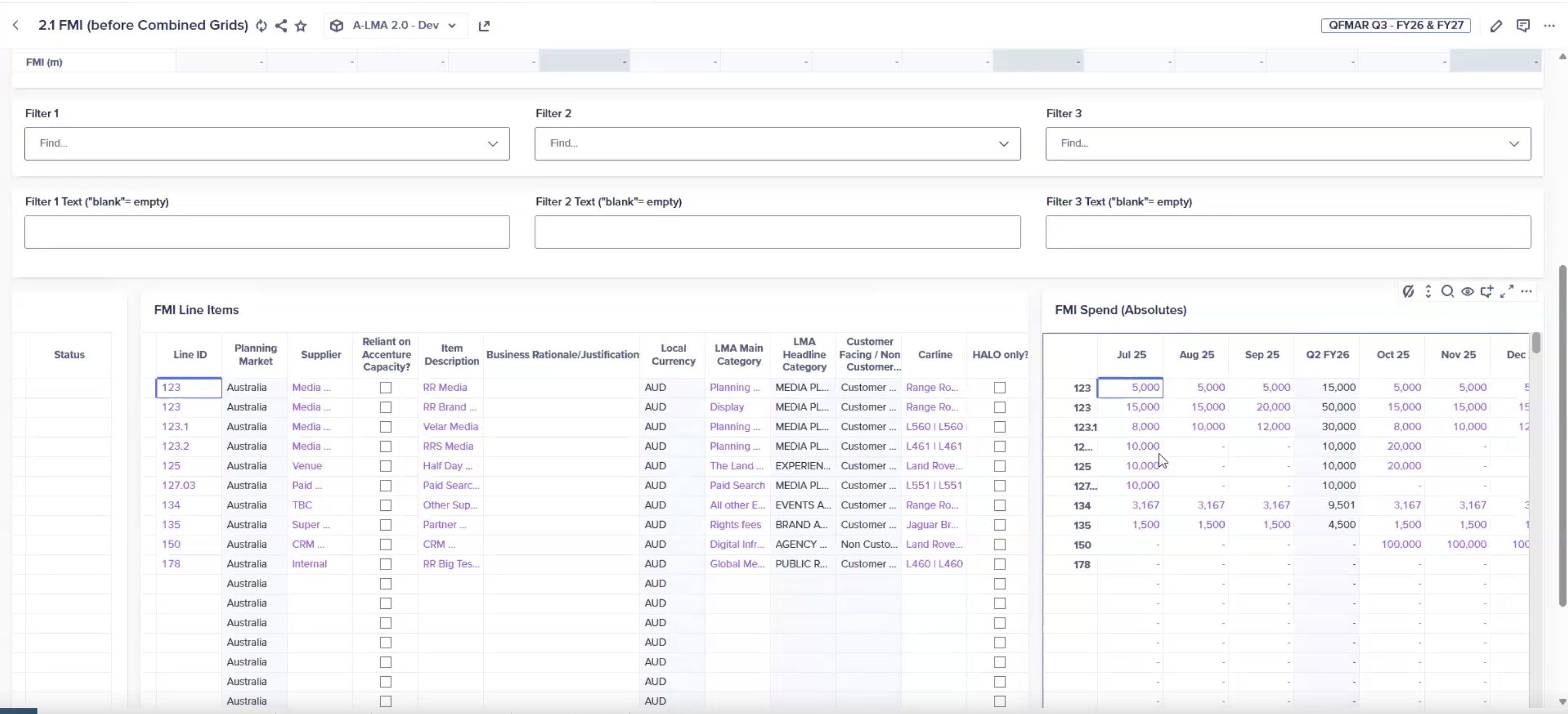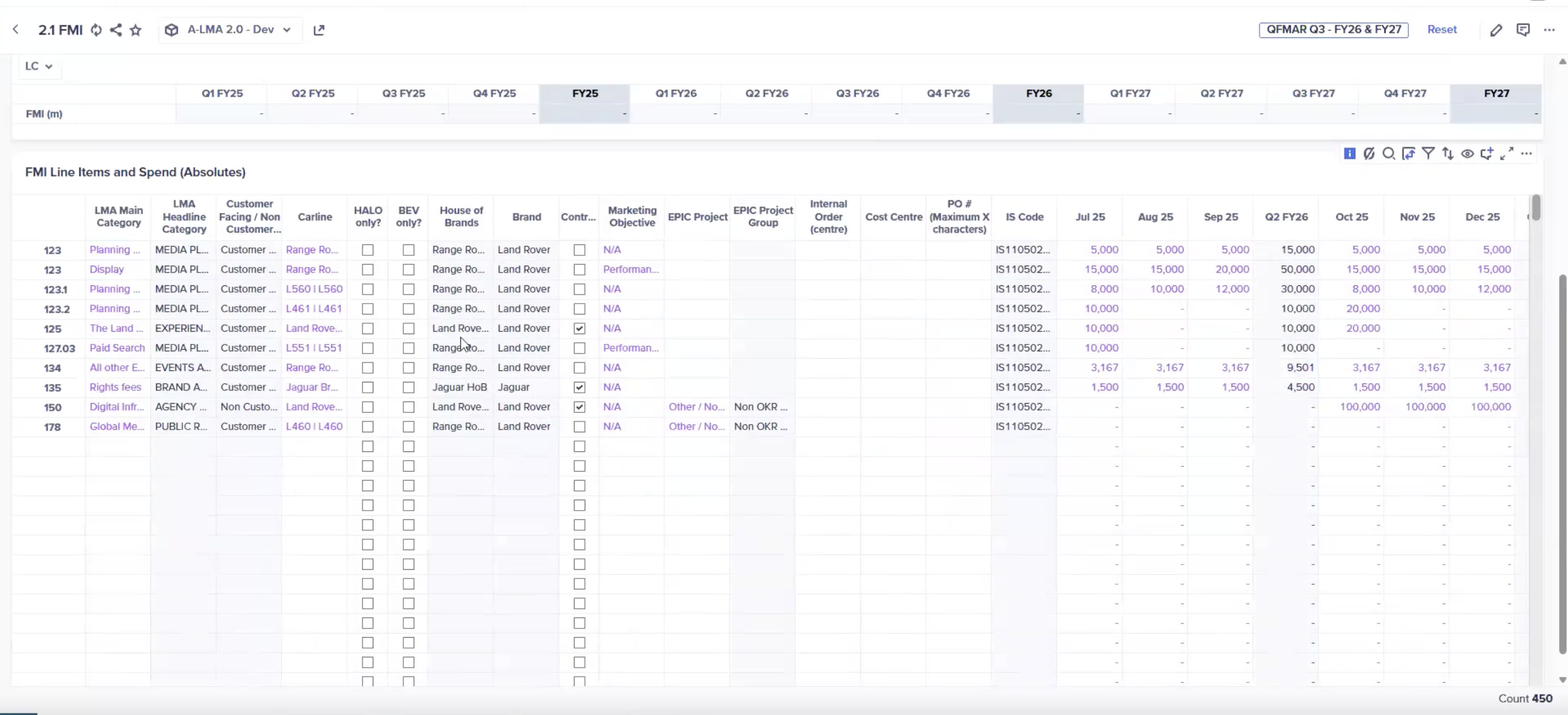 For their marketing budget, JLR needed to plan values across multiple time periods and for lines with many different attributes.