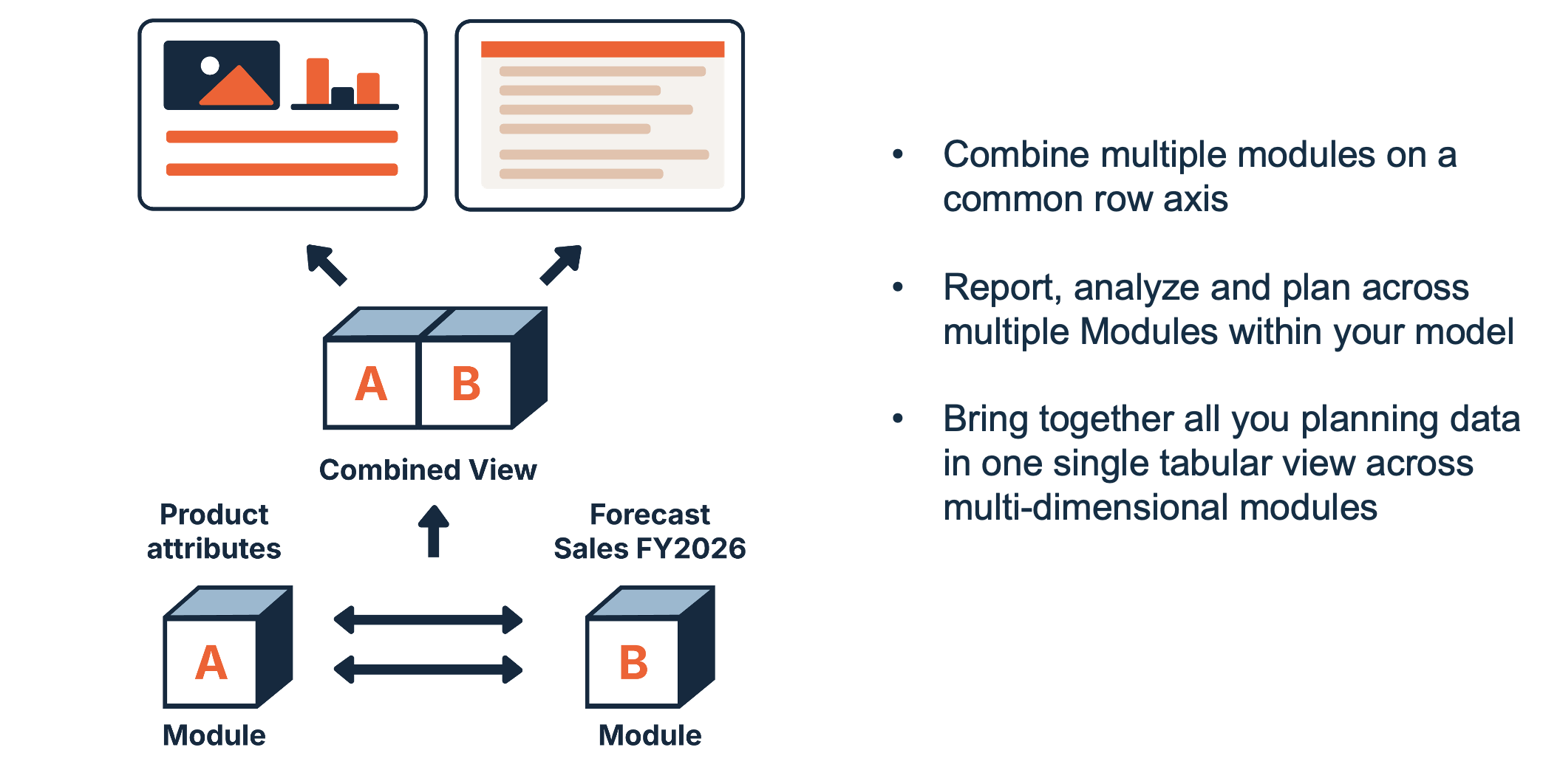 As Anaplan models grow in sophistication, so do the demands on the UX. Page builders often need to present data from different modules side-by-side. For example, you might want to show product attributes next to monthly sales data, or compare a driver-based forecast with the final plan numbers. While this has always been possible using multiple grid cards, it presented a few common hurdles: