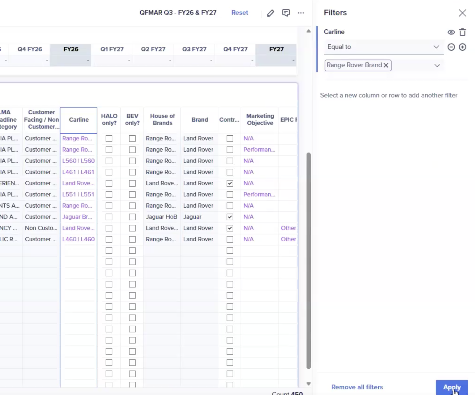 No back-end filters required, JLR now simply make use of Anaplan’s native filtering for end users.