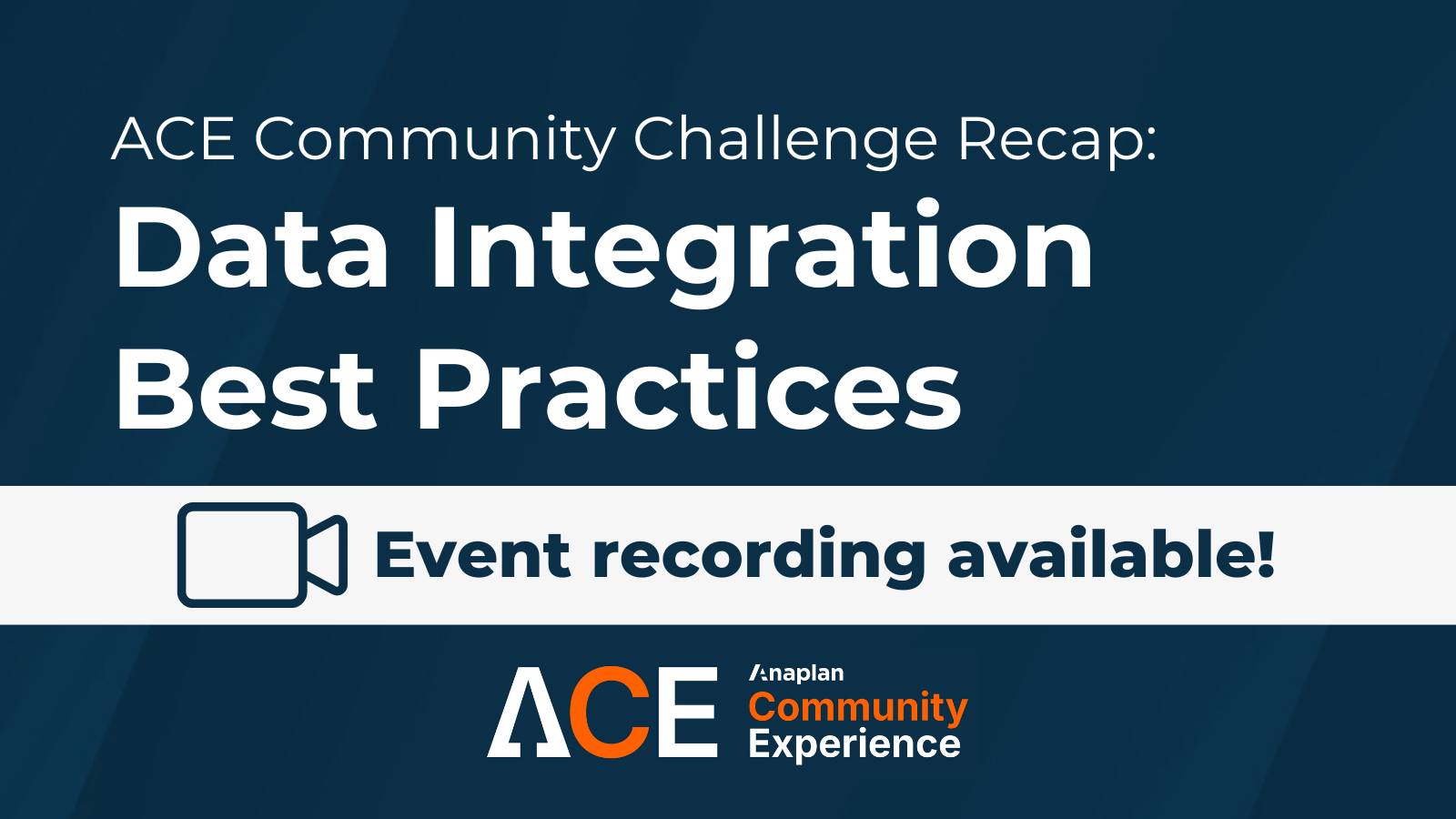 Last month, we hosted a Community Challenge inviting members to share their best practices on data integrations. We provided both beginner and advanced prompts to encourage members to discuss how they move data in and out of Anaplan, share tips for smooth integrations, and inspire others in the Community.