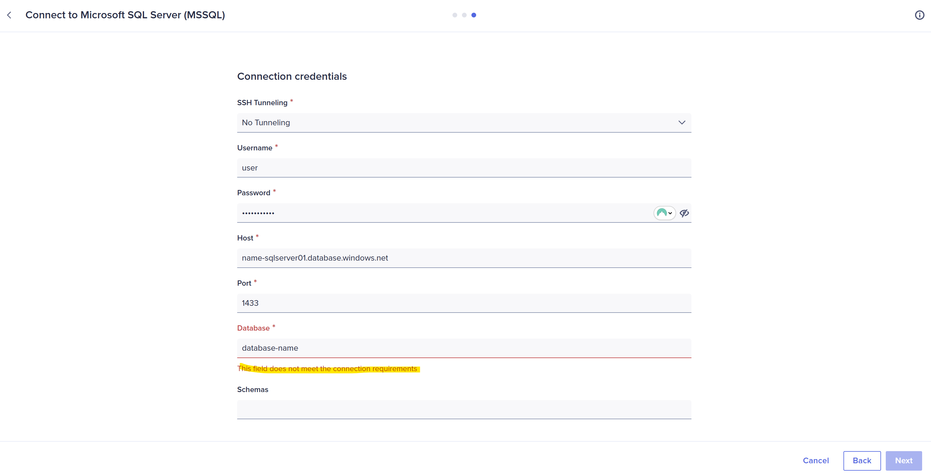 I am attempting to connect to an azure SQL database vis at the MSSQL connector in data orchestrator but am having issues and I believe it is due to hyphens in database name (which is a fairly standard naming convention I will note!)