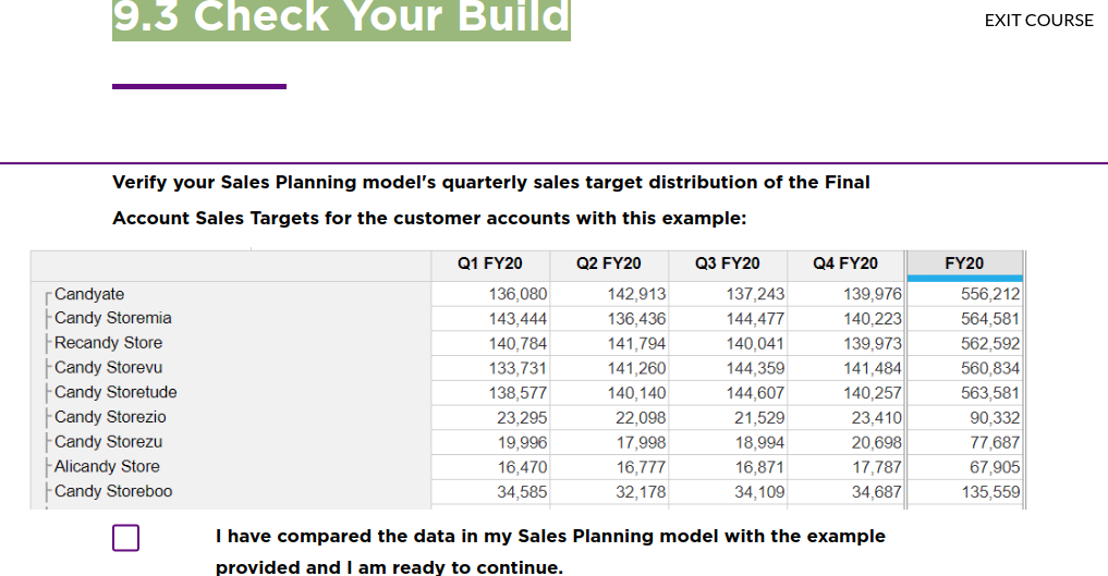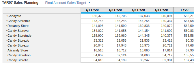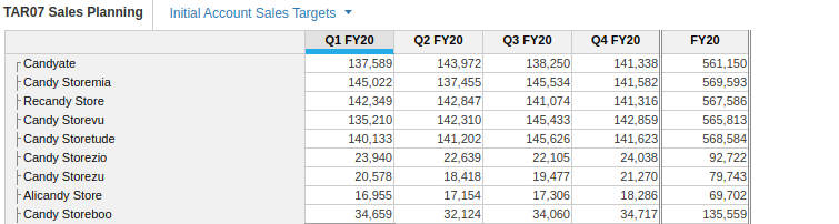 I created a new model to display the Sales Planning using the PY Revenue from DAT02 Revenue and the PY Actual Revenue from TAR02 Account Review, applying the appropriate LOOKUPs and using SYS99 to retrieve the % of Account Sales Target.