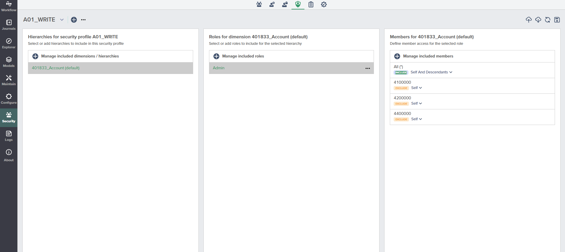 For example, in the Account dimension, users often configure account codes such as “A1100001” as the member name. When updating security settings, users can only see the code, making it challenging to identify what each account actually represents.