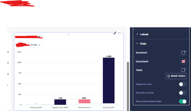 Is there any way to have the last item of the waterfall be a running total that starts from 0 and shows the net of the previous waterfall components? I'm using line items here, would just want the Ending NAV to always start at 0