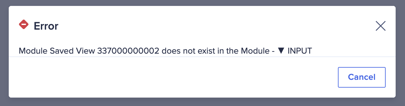 “Module Saved View 337000000002 does not exist in the Module – ▼ INPUT.”