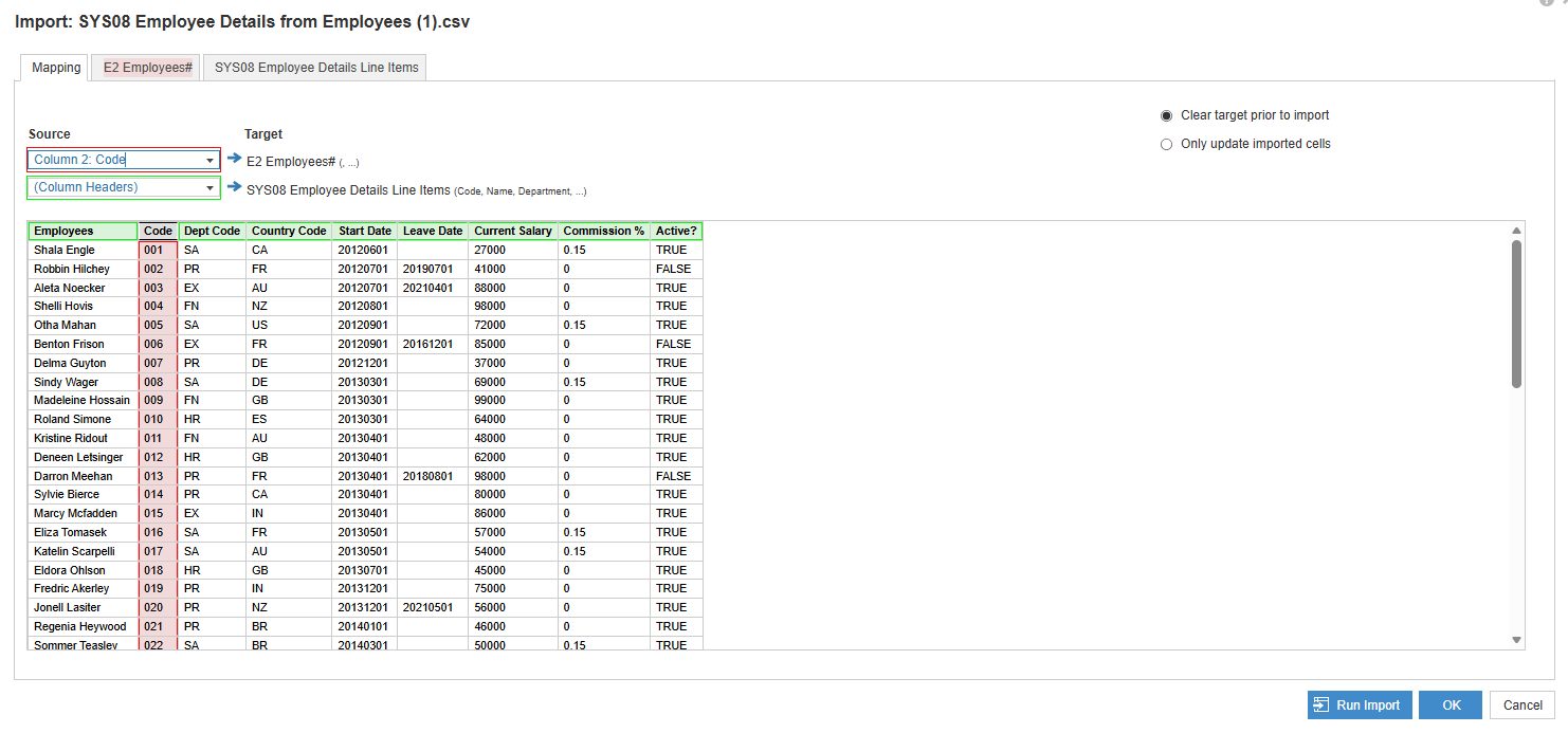 No matter what selection I try I can't get the employees to map automatically. The import always fails (of course it does, I can't get the second tab to map whatever I do). Can anyone help?