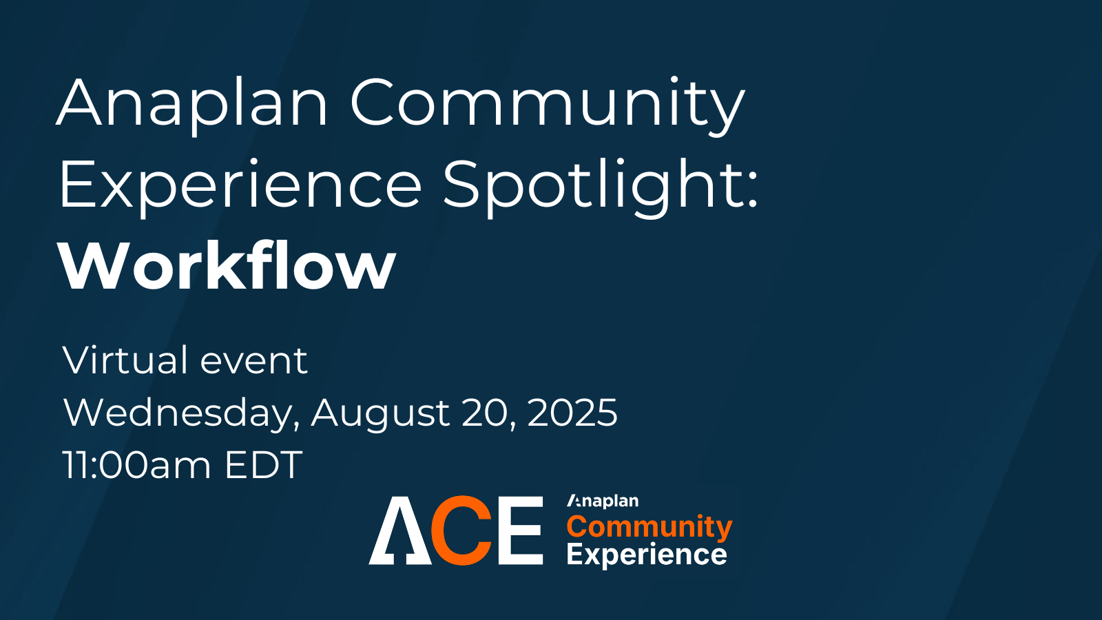 Join us for the Anaplan Community Experience Spotlight Event on Workflow!