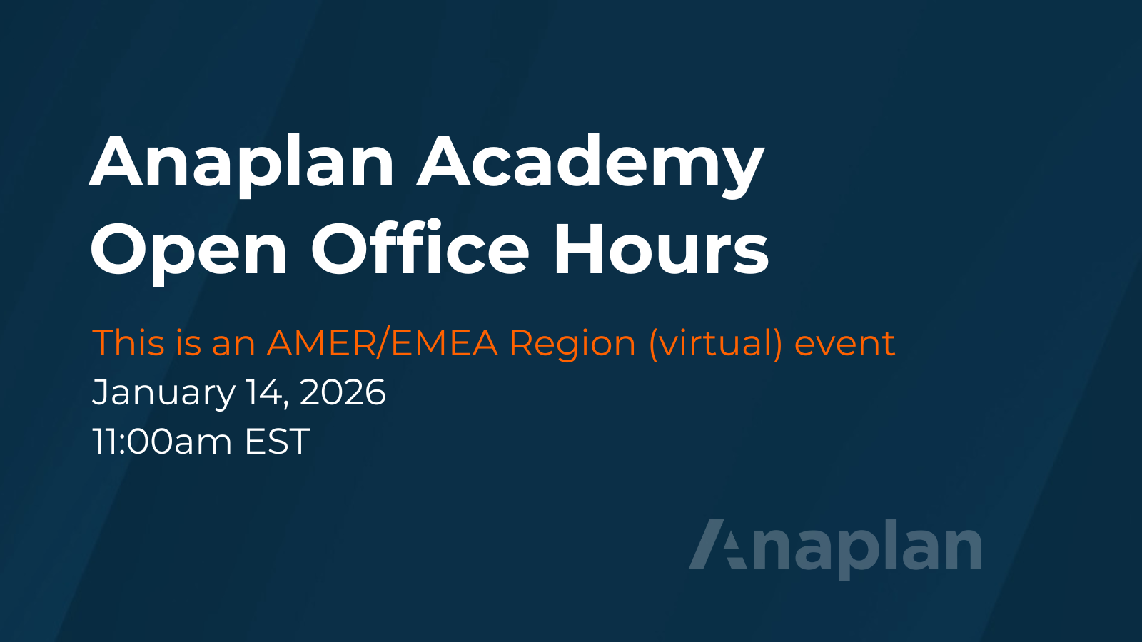 Join us for Anaplan Academy Open Office Hours, an open, interactive space designed to support your learning journey. Whether you’re just getting started with Anaplan training, working through course content, or preparing for certification exams, this session is your chance to get direct answers to your questions.