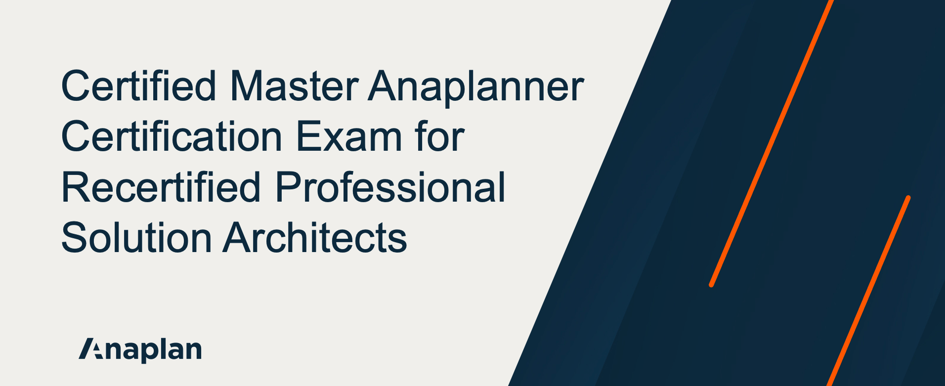 - If you wish to take the Certified Master Anaplanner Certification Exam instead of the Professional Solution Architect Recertification Exam, please be guided by the following scenarios.
